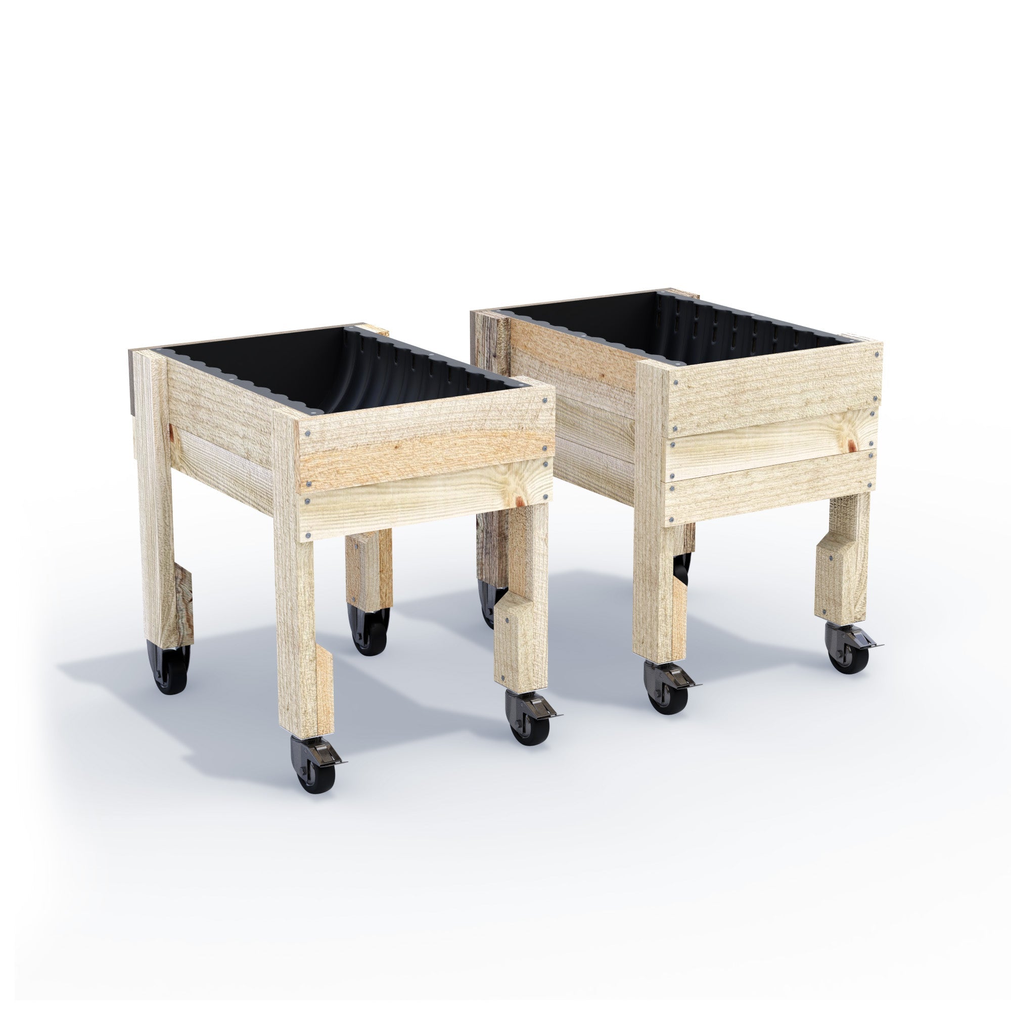 Outdoor castors are heavy duty with a combined capacity of 280kg (or 400kg for the large 41cm deep variations), with one end being fixed direction, and the other 360 degree swivel with brake - giving full and safe control to move your garden bed on any hard flat surface like a deck or on concrete.